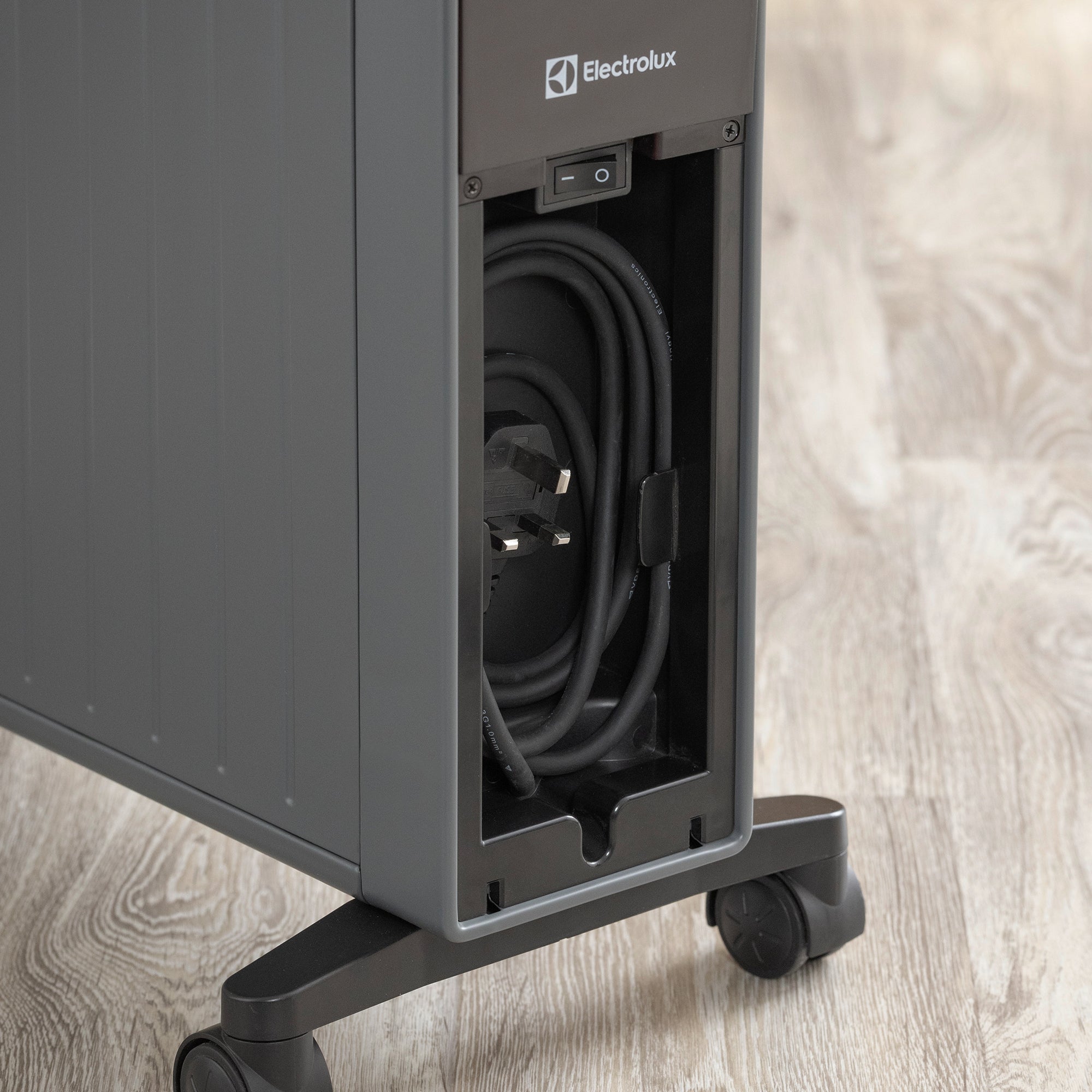Smooth-glide castors and a cool-touch carry handle make it simple to move between rooms. Built-in safety features include overheat protection and a tip-over switch for peace of mind, while integrated cord storage keeps your space tidy.